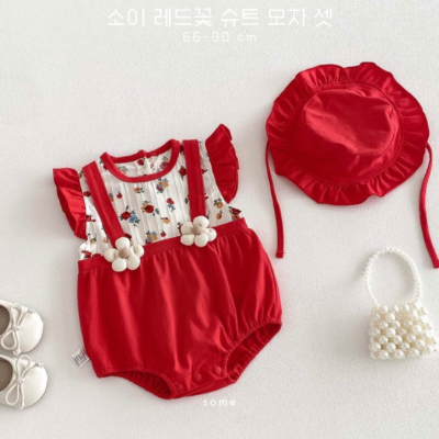 [수입] 소이 레드꽃 슈트 모자 셋 (-4/9마감)